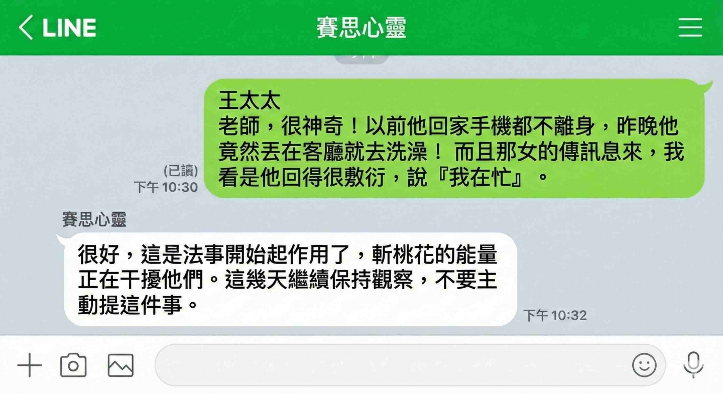 王太太回報,老公開始對手機沒那麼執著,對小三的訊息也變得敷衍。