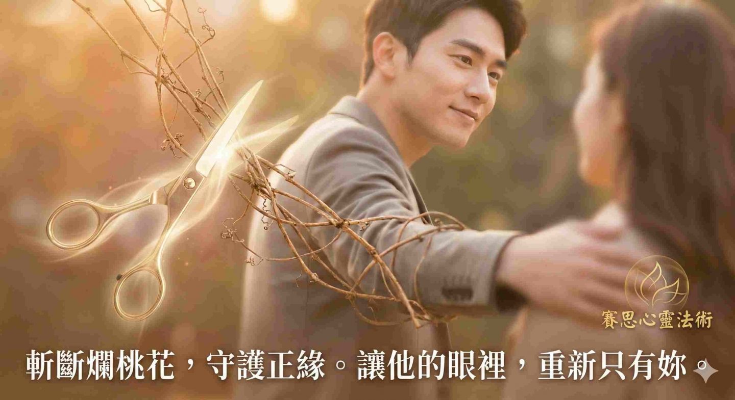 【賽思策略】:警報!這時候必須下猛藥! 請直接啟動「斬桃花」+「鎖心術」。不要給小三任何趁虛而入的機會,直接從源頭切斷他們的緣分連結,讓他覺得外面的野花「索然無味」。